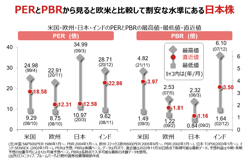 尚、この東証大号令で最も明確な目標として数値で掲げられたのが『PBR』1倍割れの解消です。PBR1倍割れは資本コストを上回る資本収益性を達成できていない、あるいは成長性が投資者から十分に評価されていないことが示唆される1つの目安と明確に指摘されています。