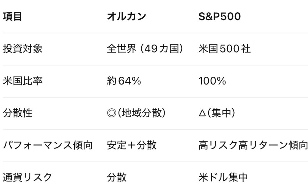刹那「オルカンの方が分散されてるけど、S&P500の方がアメリカの成長には恩恵を受けられるってことか…。」